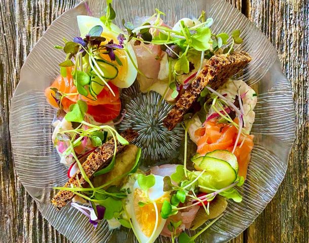 - käynti näköalaterassille, jossa pöytäryhmiä