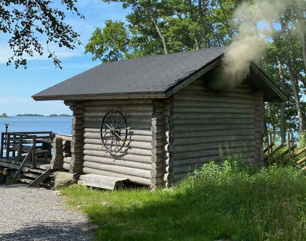 Perinteisen savusaunan lauteille mahtuu kerralla noin 15 henkilöä. Lauteilta avautuu huikea näköala merelle ja läntiselle taivaalle auringonlaskuineen.